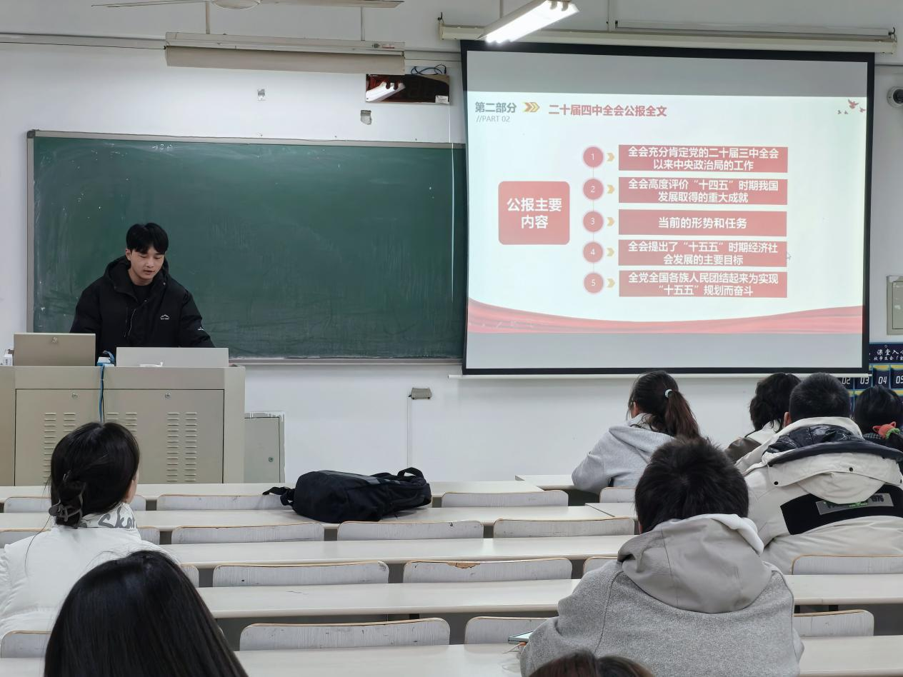 本次学习会以“逐光新征程,青春担使命”为主题,聚焦二十届四中全会公报的核心要义。主持人带领全体成员研读公报内容,深入阐释全会在“十四五”收官与“十五五”谋划关键节点的重大历史意义,解读“坚持高质量发展”等重要部署,并结合“新质生产力”等关键词,探讨其与青年成长发展的紧密联系。通过学习,同学们进一步把握“六个坚持”基本原则,深刻领悟“两个确立”的决定性意义。在随后的研讨环节,与会同学围绕“青年如何践行全会精神”展开热烈讨论。大家一致认为,学生干部应当率先垂范,坚持学用结合,将理论学习成果转化为服务同学、建设校园的实际行动,在知行合一中担当使命。