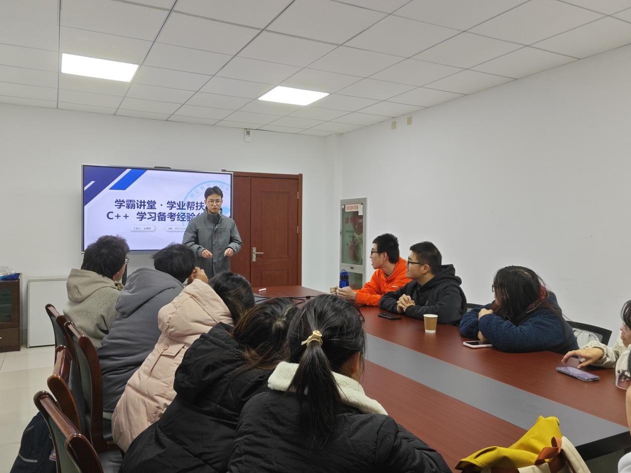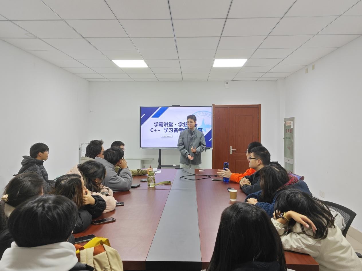 本次分享会特邀两位优秀朋辈嘉宾主讲。《C++》课程取得97分的学长,从课前预习、课中听讲、课后复习三个维度,拆解了C++的学习逻辑,还整理了编程经典题库与易错点笔记并建立群聊分享。两学期高等数学成绩85+的朋辈导师学姐,聚焦高数公式推导、题型归类和真题复盘展开讲解,同时分享了多学科平衡的时间管理技巧,给出了可落地的学习方案。互动答疑环节中,同学们踊跃提出编程调试、高数解题思路等问题,嘉宾逐一耐心解答,部分同学与嘉宾展开深刻探讨,现场交流氛围十分热烈。